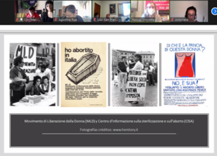 Raquel Drovetta fue la primera invitada a compartir sus investigaciones sobre la historización y genealogía del activismo abortero. Dialogó en torno a las principales características de los servicios de aborto llevados adelante por organizaciones feministas en ciudades de Estados Unidos, Italia y Francia entre los años 1969 a 1978, quienes realizaron abortos en la clandestinidad, prescindiendo de la atención de personal médico.